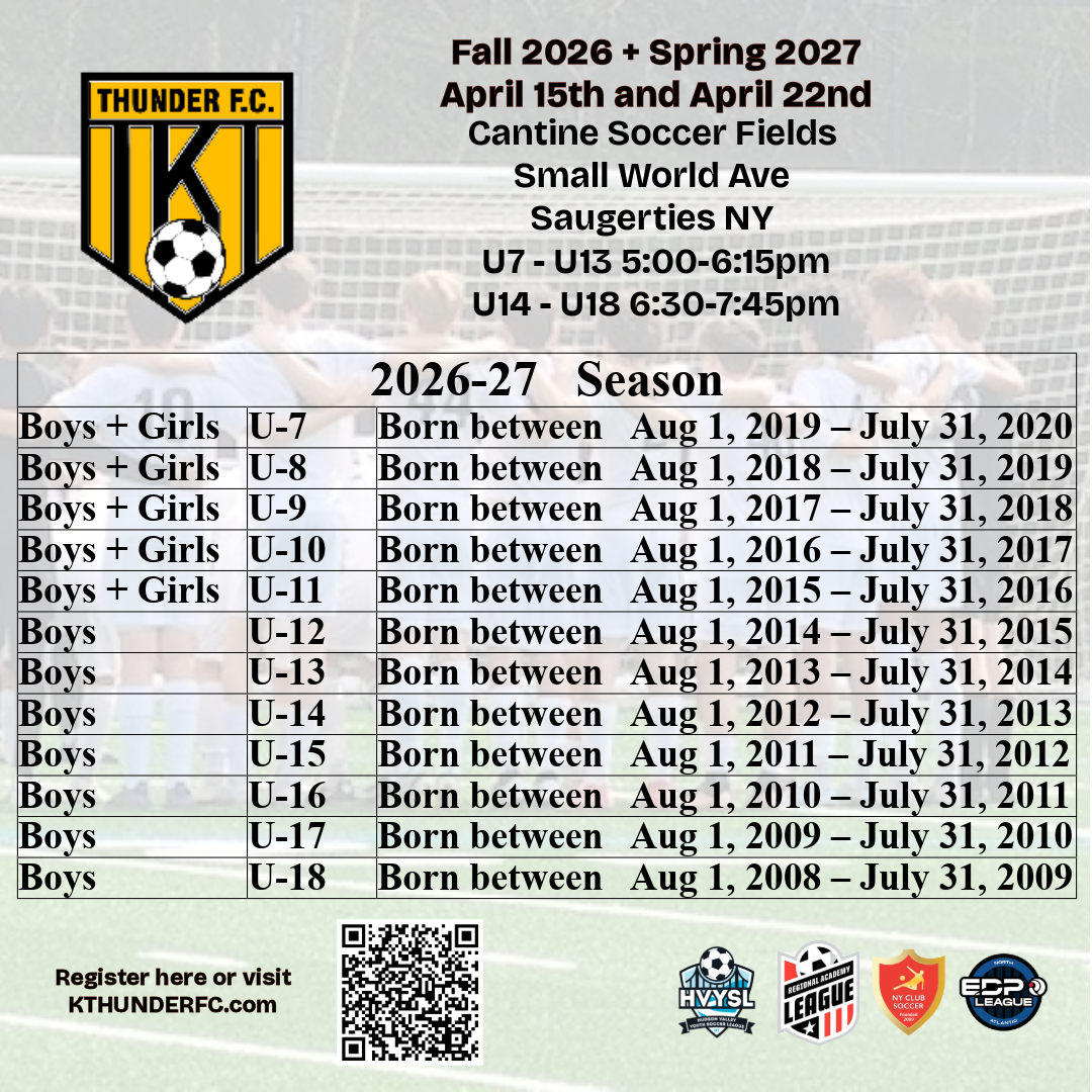 K-Thunder F.C. is dedicated to developing the whole player in alignment with U.S. Soccer’s coaching philosophy. We believe in nurturing not only technical and tactical ability, but also character, leadership, and life skills that extend beyond the field.